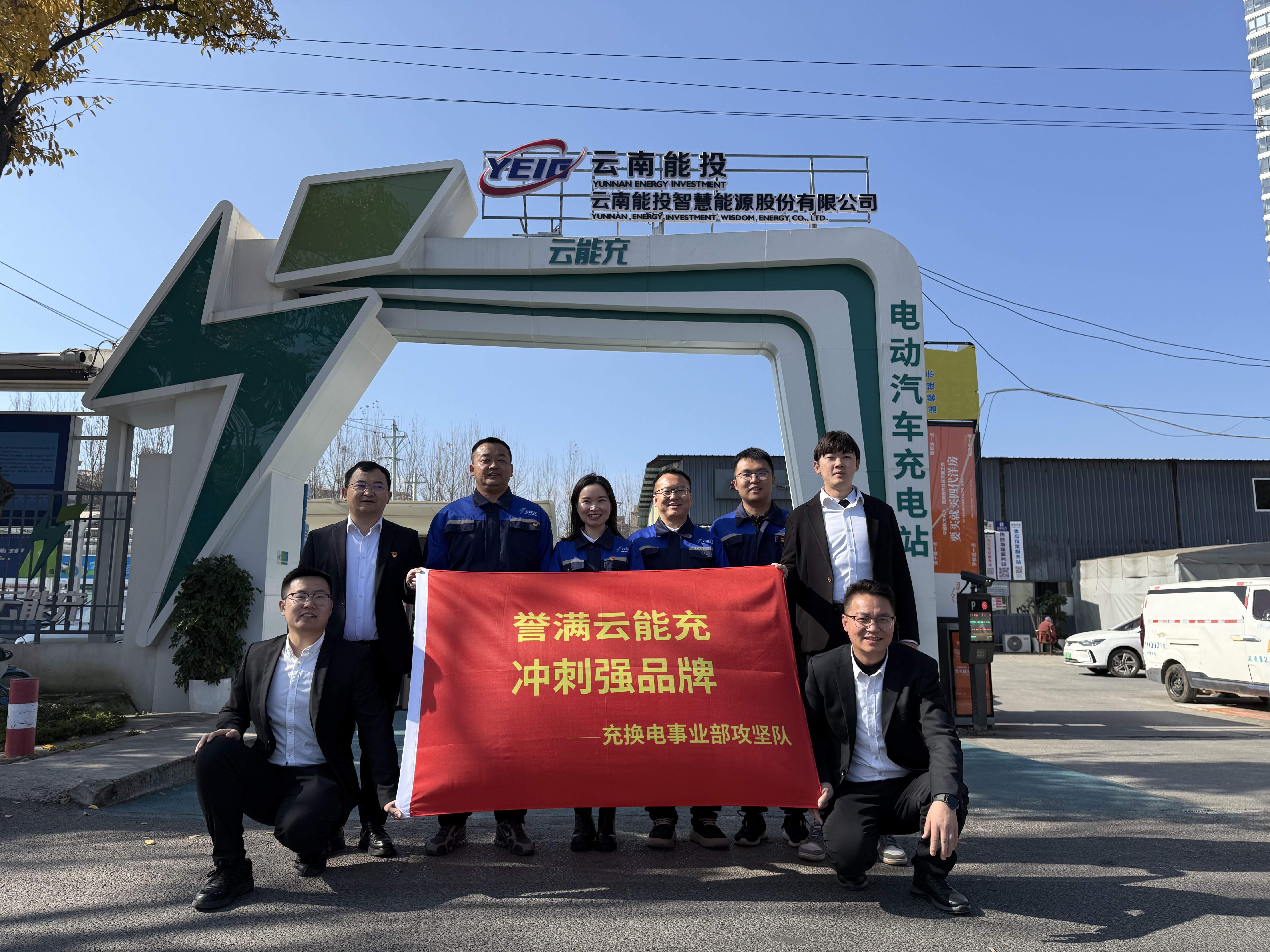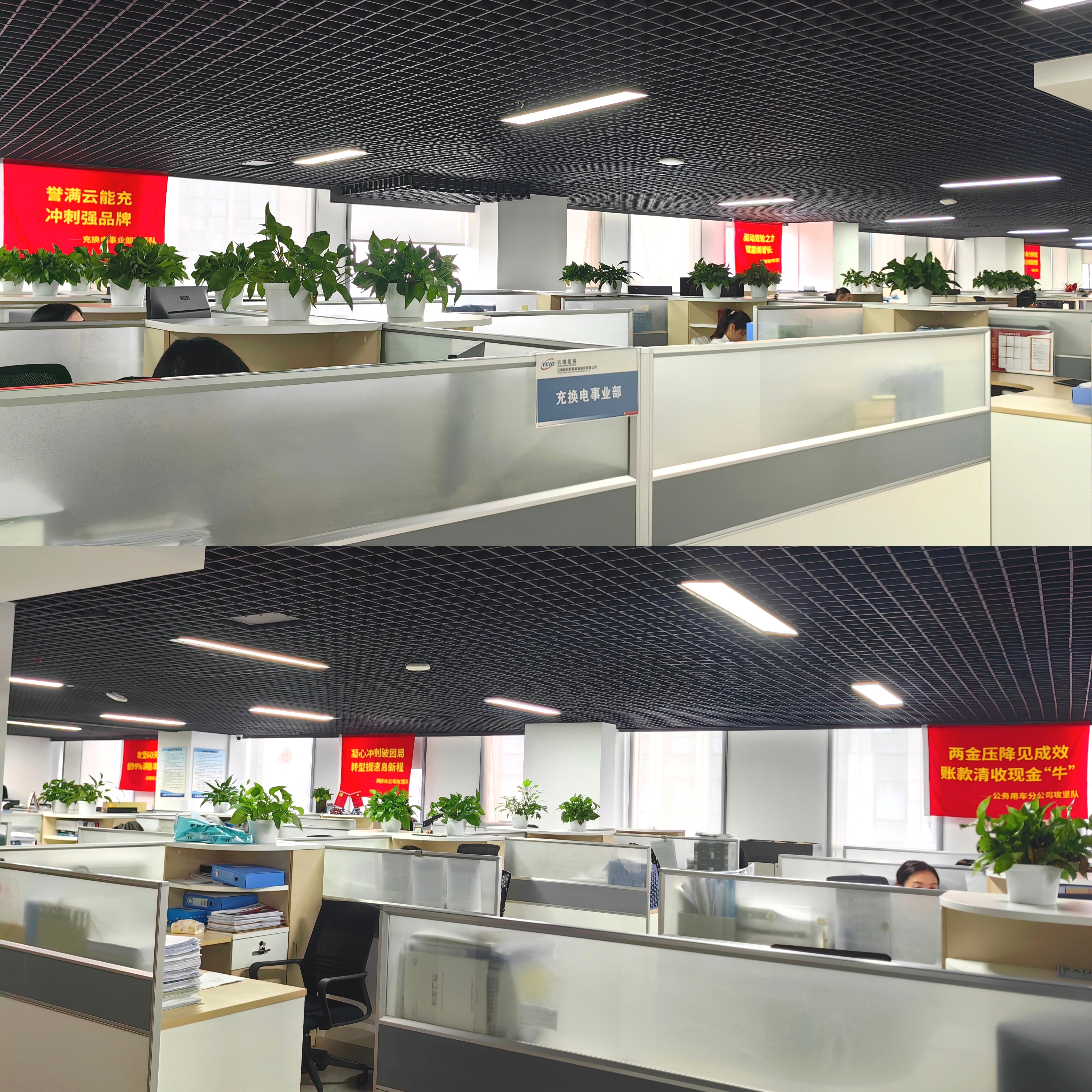 “凝心聚力拼收官,目标达成促转型”、“驱动双轮之力,赋能新增长”、“两金压降见成效,账款清收现金‘牛’”、“攻坚60天,创99%满租率奇迹”、“凝心冲刺破困局,转型提速启新程”、“誉满云能充,冲刺强品牌”,智慧能源公司办公区域飘动着六面鲜红冲刺攻坚战旗,这些由各板块攻坚干部员工拟定的口号,代表和象征着他们将以最真、最实的态度奋力完成公司交给的任务。