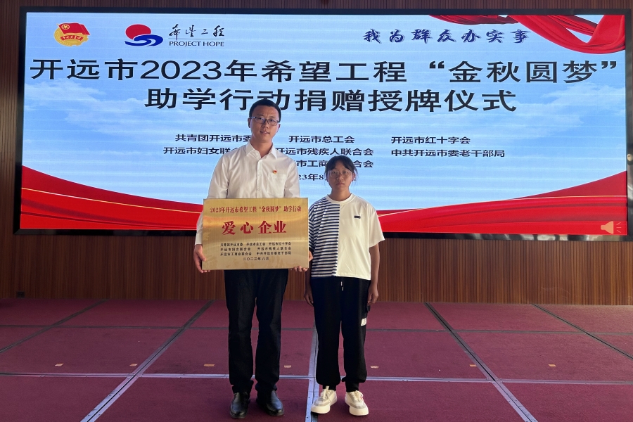 本网讯 (通讯员 刘平杰 紫馨月 报道)8月28日,红河发电公司应邀参加开远市2023年希望工程“金秋圆梦”助学行动捐赠授牌仪式。表彰会上,红河发电公司再次被授予开远市“爱心企业”称号。