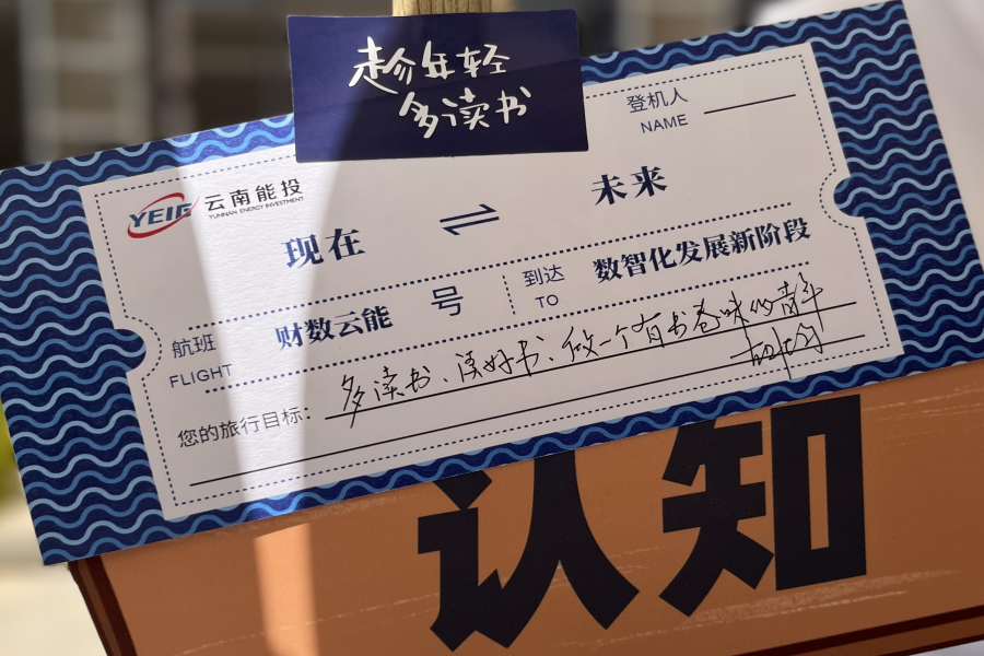 在读书日当天,财服公司、信息公司团支部积极响应集团号召,参与集团团委举办的“书香能投”图书集市,通过填写“飞行愿望卡”的形式吸引大批能投青年踊跃展示心愿理想,在热闹欢快的氛围中,集团党委书记、董事长胡均执笔在愿望卡上寄语能投青年“多读书,读好书,做一个有书卷味的青年”。