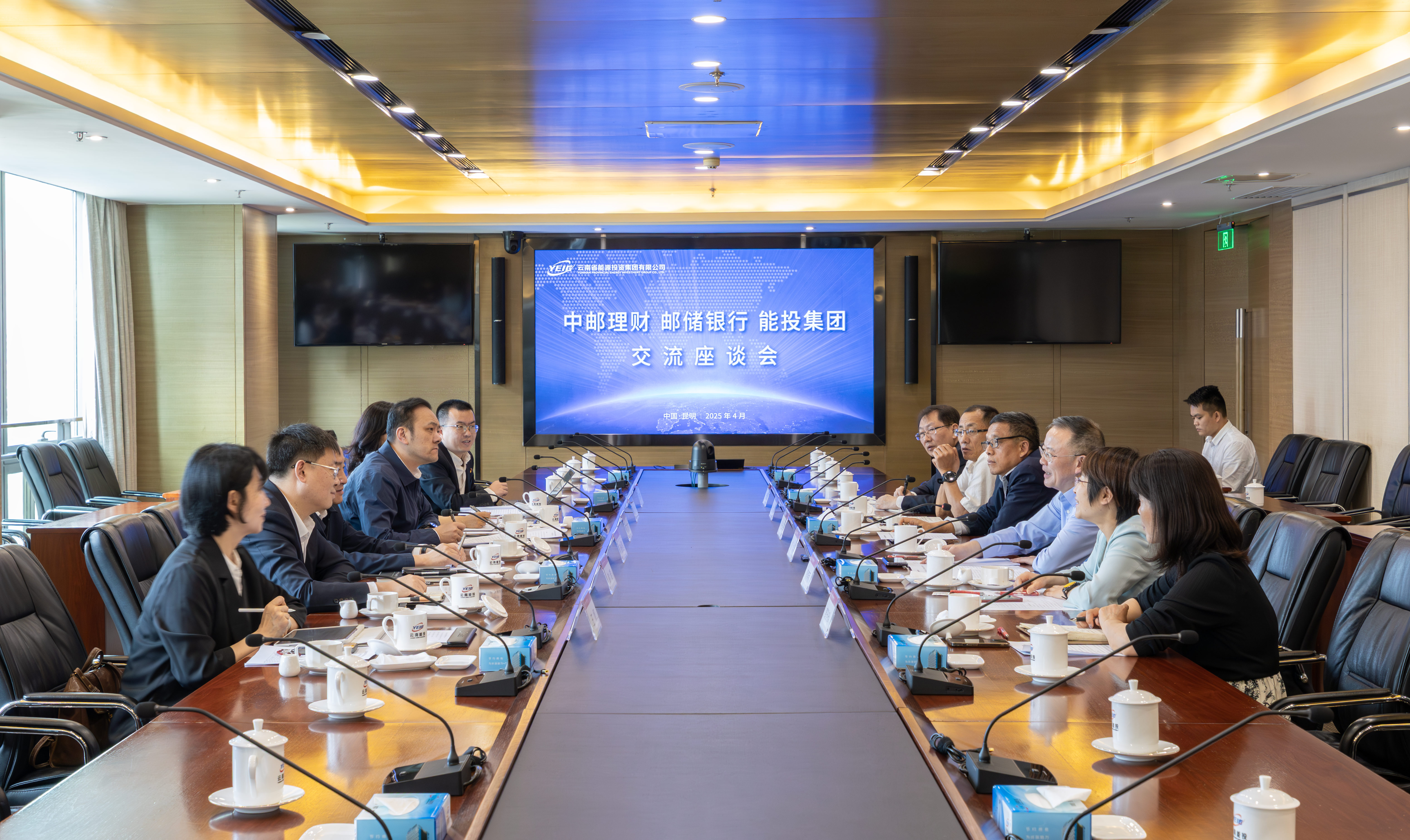 邮储银行云南省分行相关部门及昆明分行负责人,集团财务管理部,物流公司负责人,绿能集团、云能资本公司、电投公司财务负责人参加座谈。