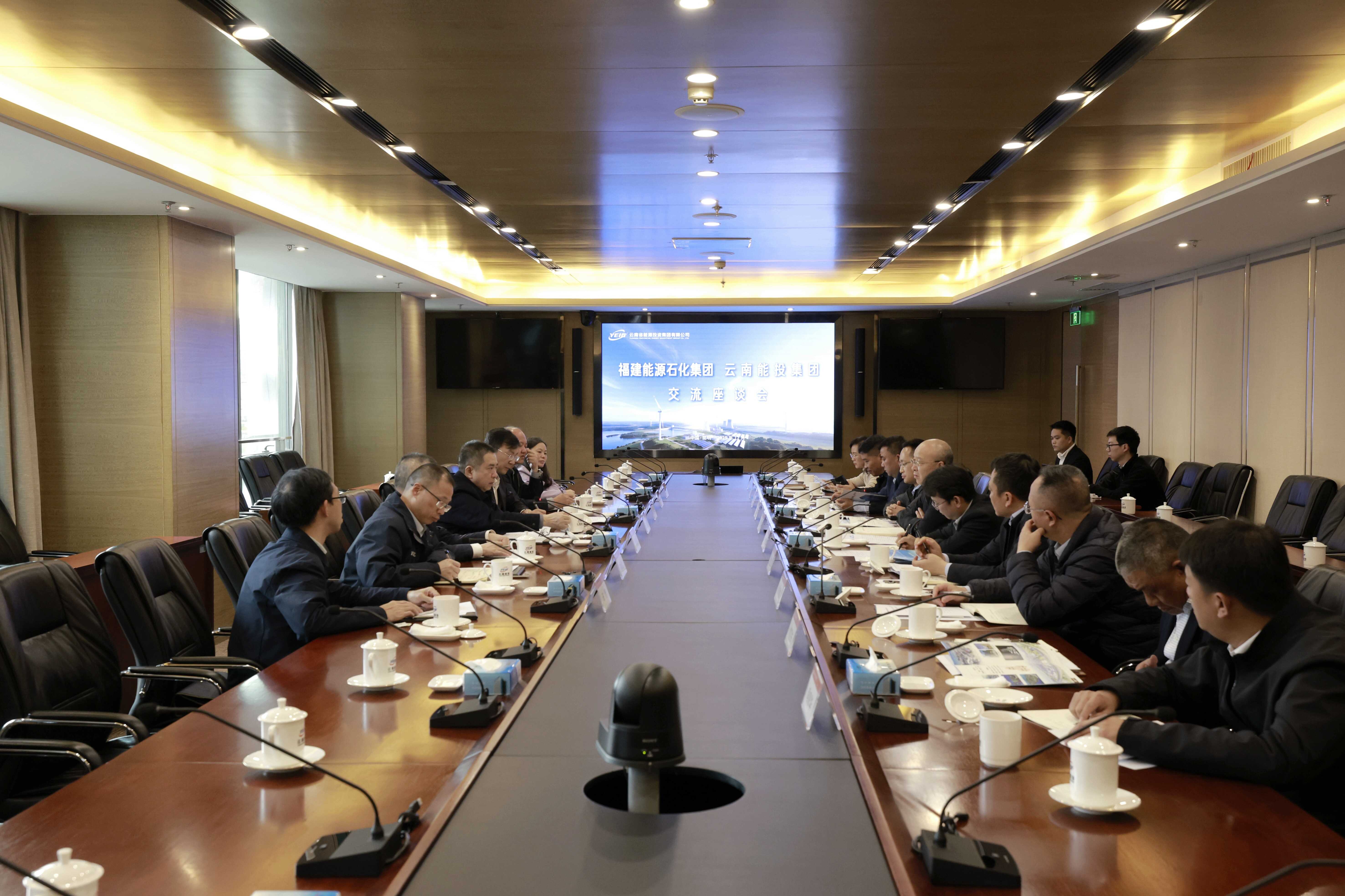 福建能源石化集团党委委员、副总经理朱玉武,战略发展部、综合产业部、办公室及福建省福能新能源公司负责人;能投集团党委委员、副总裁张武军,办公室、战略部及绿能集团、能投股份、电投公司、新材公司、香港公司、榕耀公司负责人参加座谈。