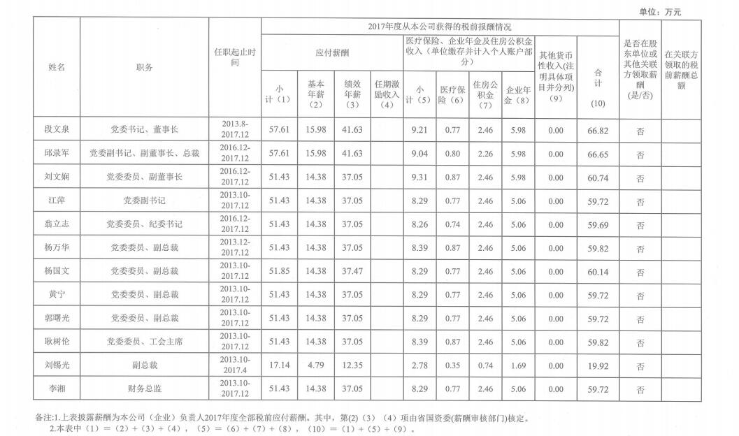 威廉体育负责人2017年度薪酬信息披露