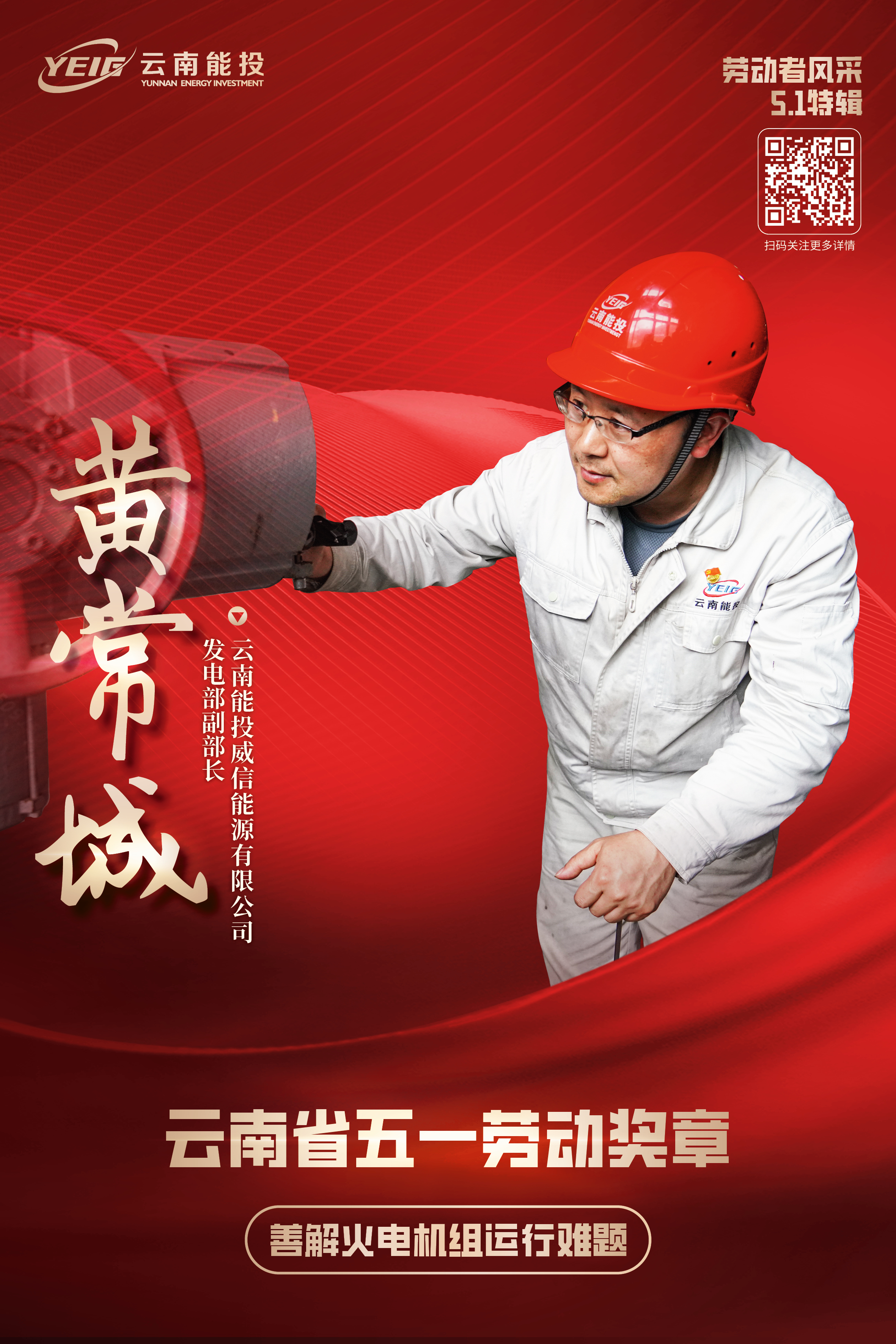 黄常城,男,中共预备党员,1974年3月生于贵州毕节。云南能投威信能源有限公司发电部副部长。他从事火电工作30年,致力于解决汽轮机专业各种技术难题,尤其擅长解决汽轮机轴承振动超标、凝汽器真空低等涉及机组安全、经济运行的技术难题。在威信公司工作期间,数十次解决汽机专业技术难题,其中解决机组重大安全隐患7项,推行大幅提升机组经济性技术3项。获云南省五一劳动奖章、能投工匠、先进工作者、先进个人等称号。