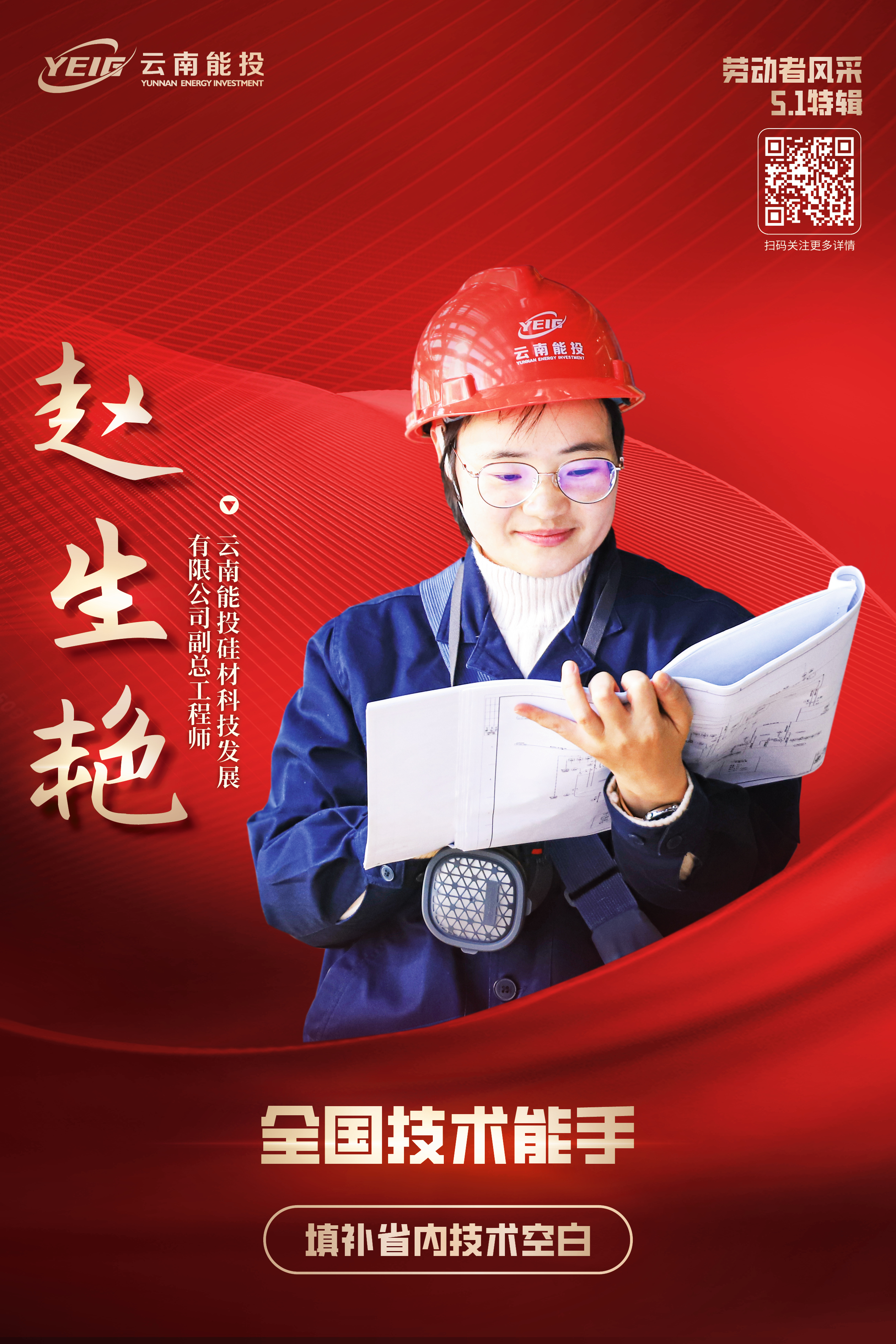 赵生艳,女,中共党员,1986年生于云南红河,云南能投硅材科技发展有限公司副总工程师,云南省省级技能大师工作室带头人。她刻苦钻研有机硅单体合成、单体精馏生产技术,勇于创新,突破了有机硅技术壁垒,填补了省内技术空白,在云能硅材项目建设中作出了贡献。取得3项发明专利和3项实用新型专利,获省、市级科技奖励1项,参与完成3项云南省科技项目。获全国技术能手、云岭工匠、云南省技术能手、云岭首席技师、云南省三八红旗手、云南省五一劳动奖章、云南省多晶硅操作工技术状元等荣誉和称号。